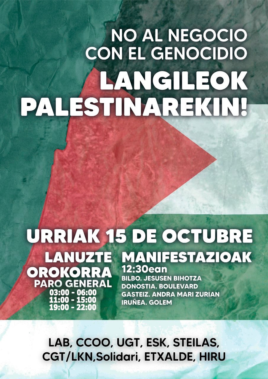 A las 12:30 h, manifestaciones en Bilbao (Sagrado Corazón), Donostia (Boulevard) y Gasteiz (Virgen Blanca). Lab Eus