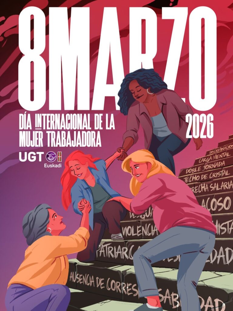 En la comparecencia, también ha participado el responsable de UGT Euskadi, Tximi López, hablando de la deuda histórica de la lucha obrera con las mujeres, «que han sostenido la vida y los cuidados para que las largas asambleas en las fábricas, las manifestaciones y las huelgas, fueran posibles». El reconocimiento, ha añadido, «siempre fue para ellos, pero nada de todo lo conseguido hubiera sido posible sin ellas». El responsable de UGT Euskadi ha asegurado que la labor de los hombres es «acompañar» al feminismo, recordando que «para que ellas den un paso adelante, otros deben de dar un paso atrás». Y en la labor de acompañar, ha convocado a participar en las movilizaciones, tanto del sindicato como de las organizaciones feministas, de cara al 8M. UGT Euskadi se concentrará el viernes 6 de marzo a las 12:00, en la plaza Moyua de Bilbao. A la misma hora, también realizará concentraciones frente a sus sedes de Donostia y Gasteiz.