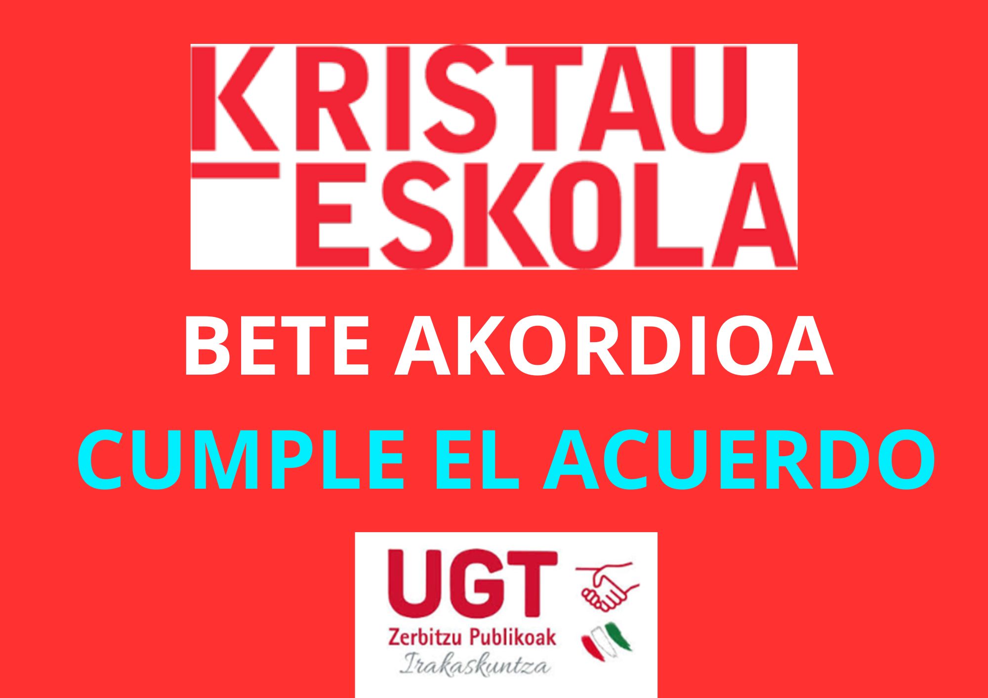 Kristau Eskolari (KE) exijitzen diogu greba amaierako akordioan (GAA) adostutako puntu guztiak bete ditzala – Exigimos a Kristau Eskola (KE) que cumpla todos los puntos acordados en el acuerdo de fin de huelga (AFH).