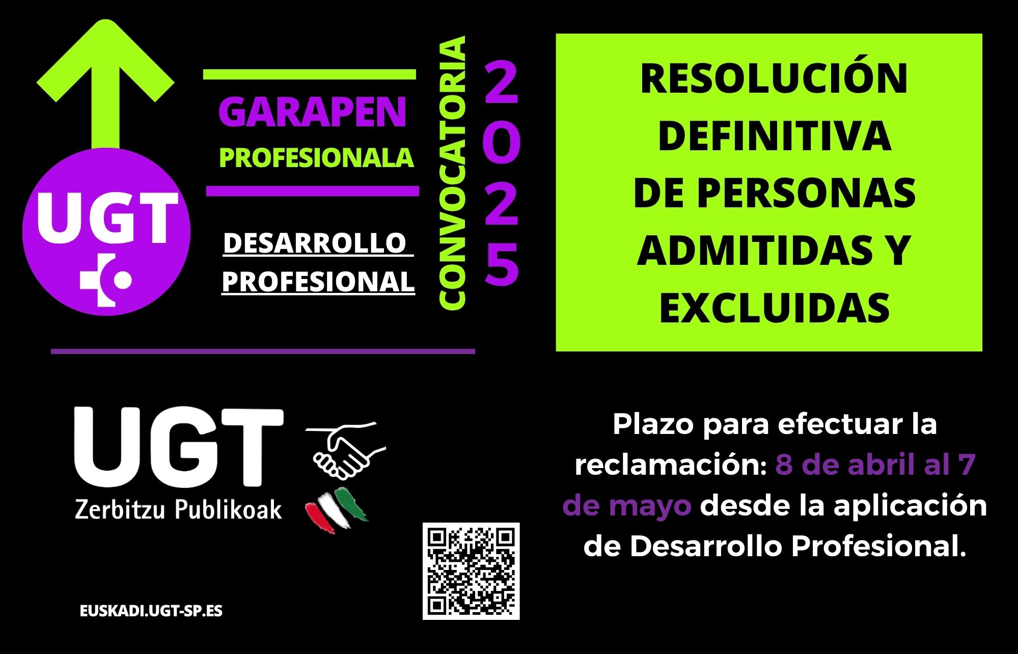 Publicada la resolución provisional de personas admitidas y excluidas en la convocatoria de desarrollo profesional 2025