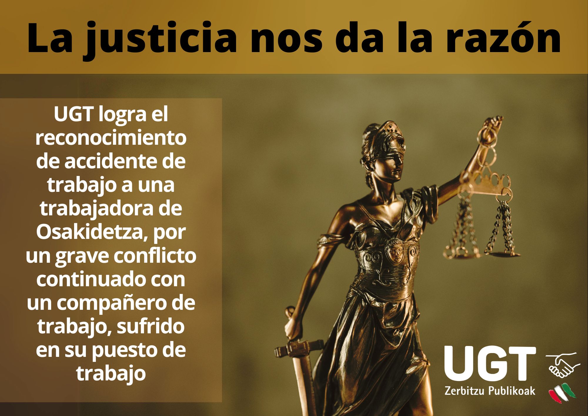 En UGT Zerbitzu Publikoak hemos alcanzado un nuevo hito en la defensa de la salud y la dignidad de las plantillas. Gracias a la acción sindical, el INSS ha dictaminado que las bajas de una trabajadora de la OSI Uribe (Osakidetza), diagnosticada con un trastorno adaptativo de ansiedad, derivan de un Accidente de Trabajo.