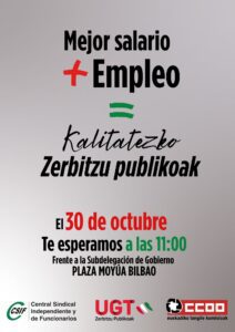 El jueves 30 nos concentramos en Bilbao contra el bloqueo de la negociación colectiva en la función pública estatal