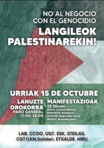 El 15 de octubre UGT Zerbitzu Publikoak salimos a la calle en movilización por el pueblo palestino. NO al negocio con el genocidio. octubre 3, 2025 Leer más »