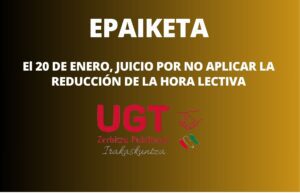 UGT IRAKASKUNTZA behartuta dago patronalei salaketa jartzera – UGT IRAKASKUNTZA se ve obligada a demandar a las patronales noviembre 5, 2025 Leer más »