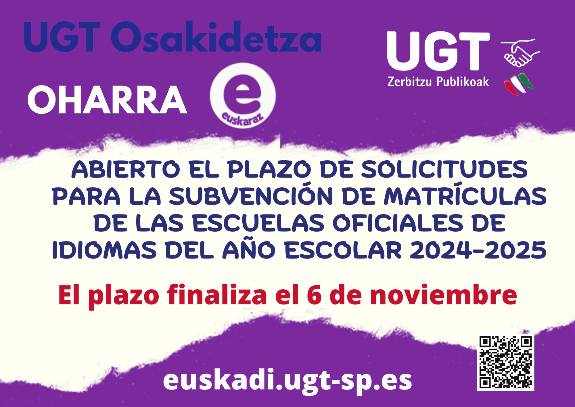 Publicada la Resolución 1139/2025, de 23 de octubre, de la Directora de Recursos Humanos de Osakidetza, que regula el procedimiento para la subvención de matrículas de las escuelas oficiales de idiomas del año escolar 2024-2025.