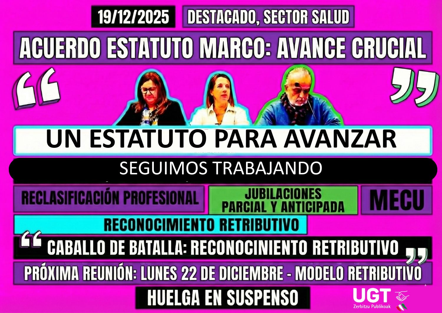 Los sindicatos recuerdan que, una vez que el Ministerio aceptó su propuesta para que el nuevo Estatuto Marco establezca una clasificación basada en la formación académica y nivel de cualificación adquirida en base al Marco Español de Cualificaciones para el Aprendizaje Permanente (MECU), el “caballo de batalla” se encuentra en lograr también el reconocimiento retributivo correspondiente.