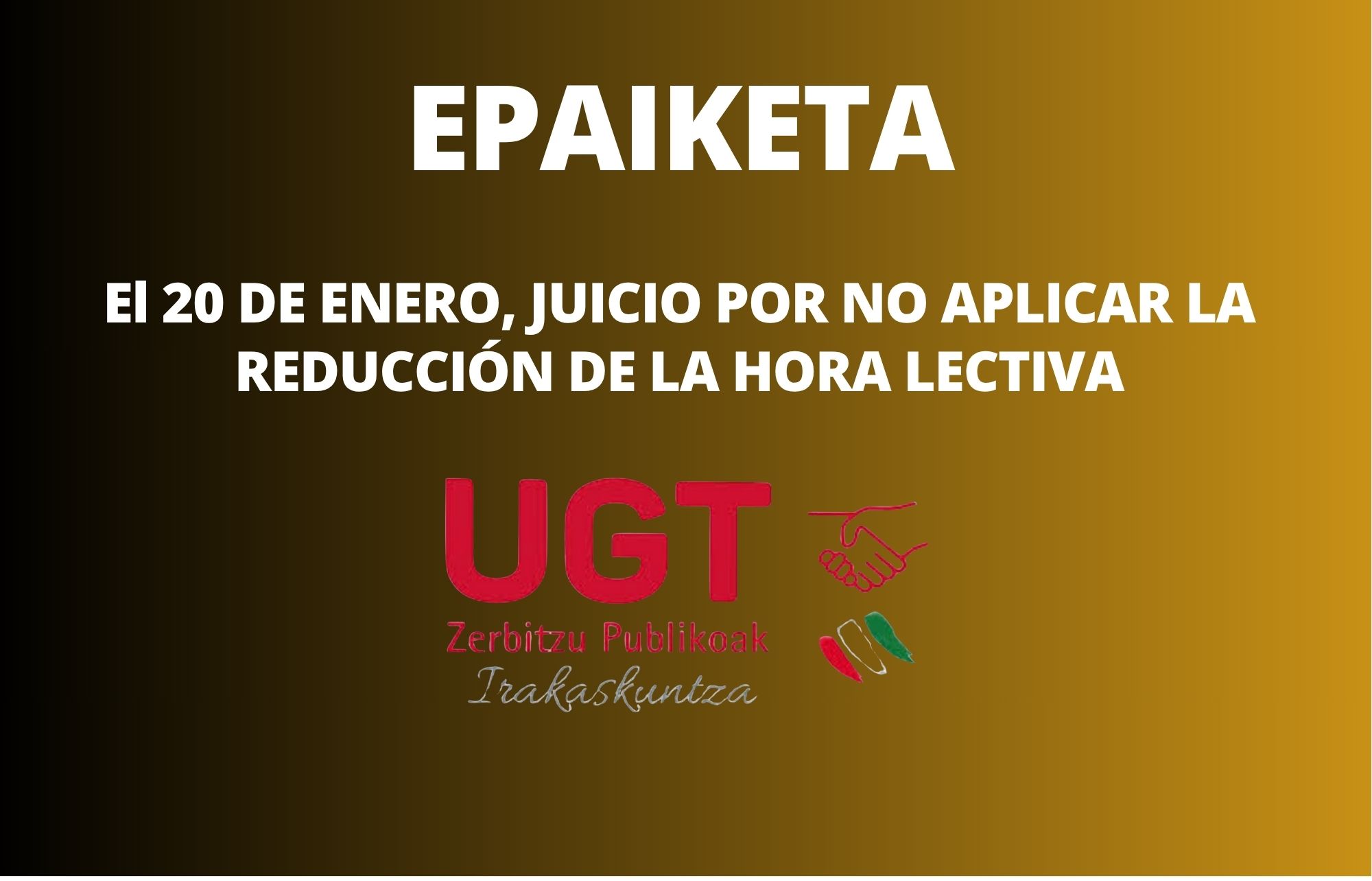 UGT, STEILAS, CCOO y LAB se concentrarán EL 20 de enero para reivindicar el cumplimiento de lo firmado en febrero de 2024, tras haber acudido a los tribunales el 21 de octubre.
