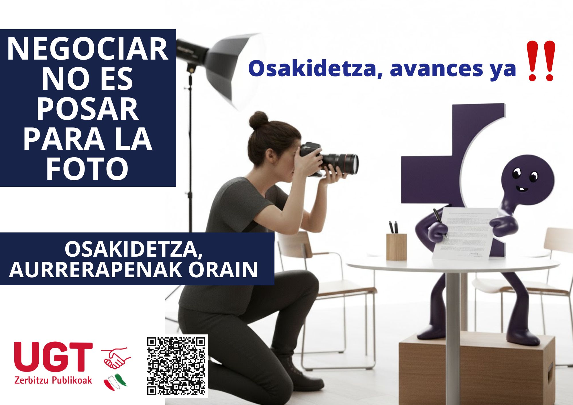 Osakidetza lleva tiempo arrancando las reuniones con buenas palabras. Pero los hechos son tozudos: NO HAY AVANCES. ¿Dónde están las propuestas reales en Permisos y Licencias? ¿Y en Desarrollo Profesional? ¿Y dónde están las del Decreto de Puestos Funcionales? Lo decimos claro: las peticiones principales de UGT no aparecen reflejadas en ninguno de los textos entregados por Osakidetza. Meses y meses sin concreción. ¿Negociación de verdad o una pantomima para mantenernos fuera de las calles?